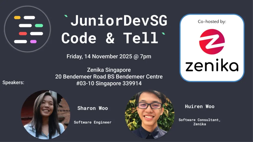 JuniorDevSG is a developer interest group that focuses on providing a place for junior developers to learn and network with each other.