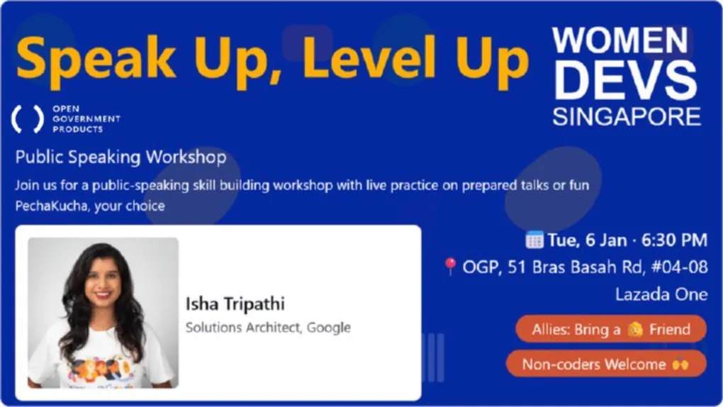 We’ll kick off with Isha sharing practical tips on how to structure your message, keep people engaged, and stay calm when the spotlight hits. 🌟