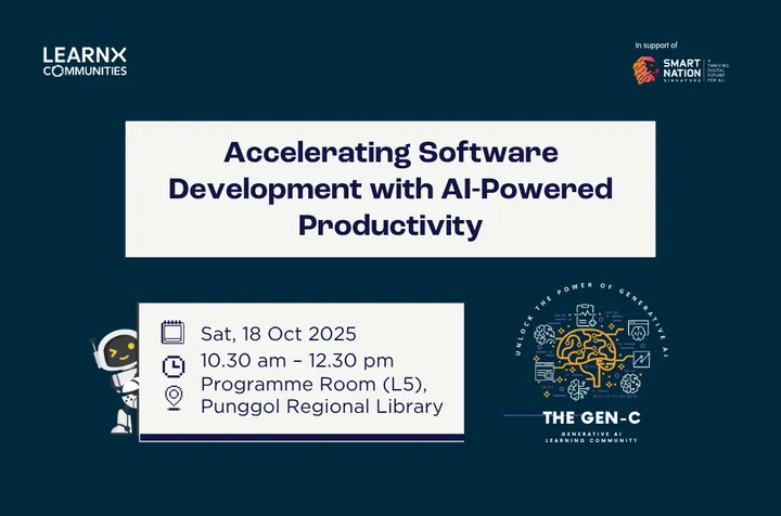 We are a group of individuals who are passionate about contributing as a community towards building up AI talents and boosting the AI practitioner pool in Singapore. We come together to learn, discuss & experiment with Generative AI, and also run training events and workshops for the public. We run a monthly sharing session at Punggol Regional Library and the details would be posted in our various social media channels listed above.